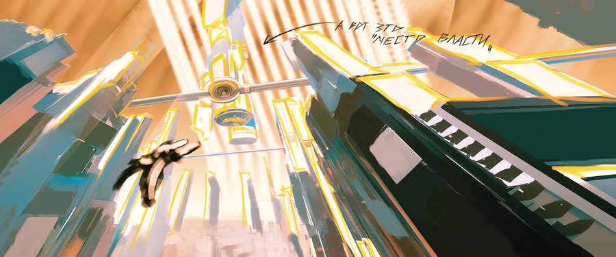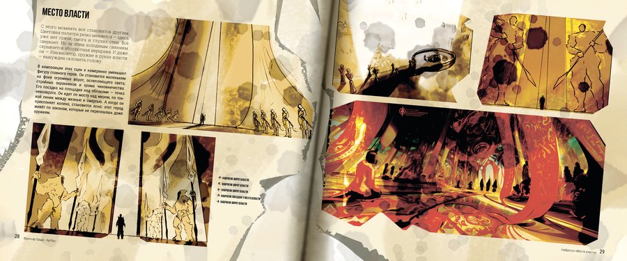 Инквизитор направляется на верхний уровень, где живут правящие. Блок сопровождается визуальным описанием транспорта и этапами создания сцен.