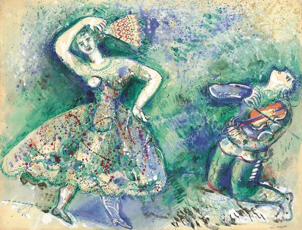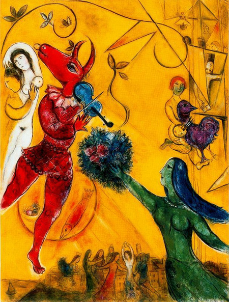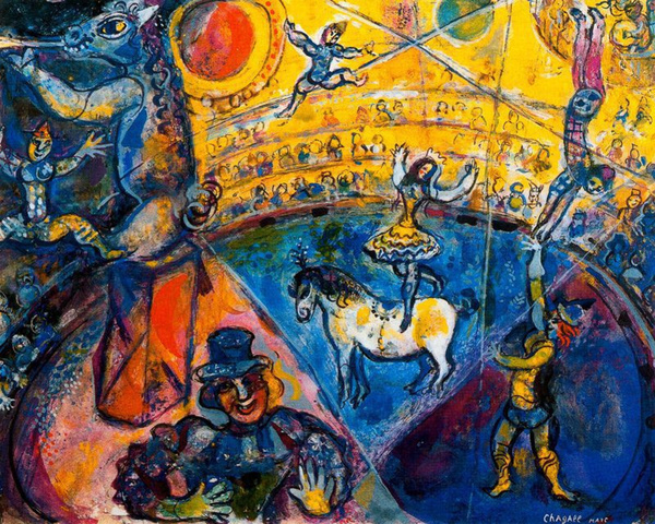 Художник, который нам сегодня будет помогать Марк Шагал. Люди в его работах очень динамичны. Они танцуют, выступают в цирке и даже обычный поцелуй у него изображен в движении.