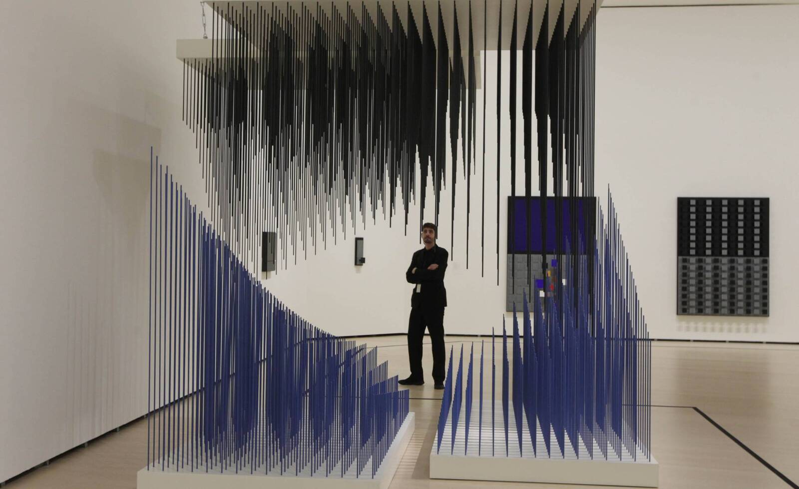 В зоне с чёрно-белыми работами залы соединены узким коридором, предоставляющим обзор на волнообразный каскад сидений, имитирующий то же подобие вибрации, что и на картинах.