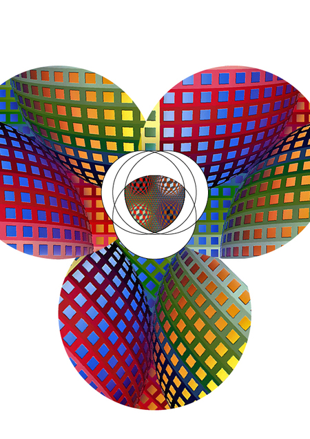 Зоны: 1 — чёрно-белые картины 2 — картины только в цвете 3 — скульптуры и картины с иллюзией объёма, демонстрирующие комбинацию приёмов и визуальных эффектов из двух предыдущих зон