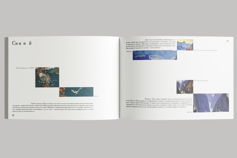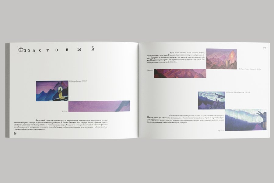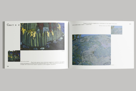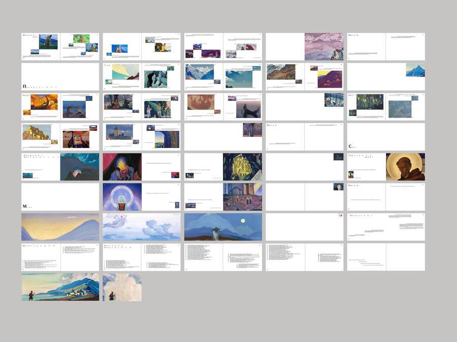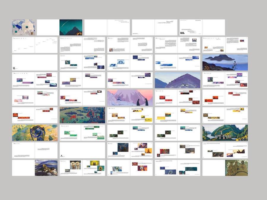 Сетка основывается на картине Николая Рериха «Странник светлого града». Динамика книжки заключается в том, что по мере её пролистывания фрагменты картин становятся больше, а текста всё меньше. Так создаётся тишина.