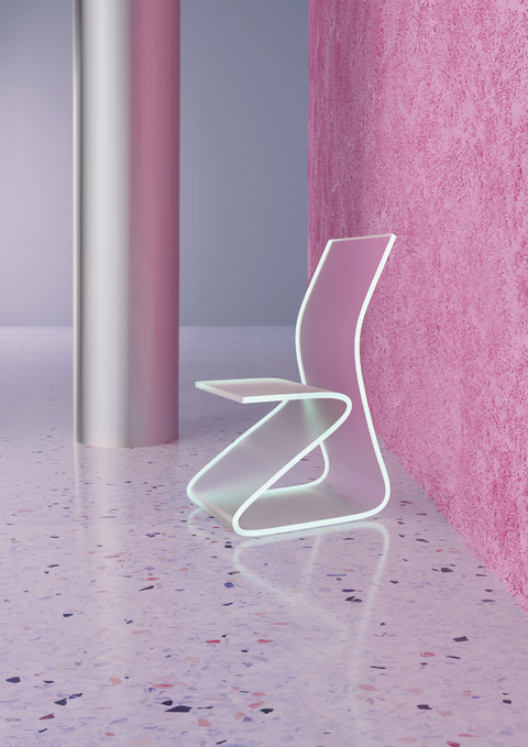 The concept is based on the metaphor of a natural phenomenon — fog. The glow of objects in a veil of thick fog served as inspiration for creating images in the VEIL furniture collection. And the photographic technique of luminography supplemented the form. In search of the possibility of the most accurate transfer of metaphor to the subject, I was looking for material that would give a one hundred percent hit in the visual component of the fog. Such a material was a matte polycarbonate with a thickness of 20 mm. Kant is a fluoride polymer.