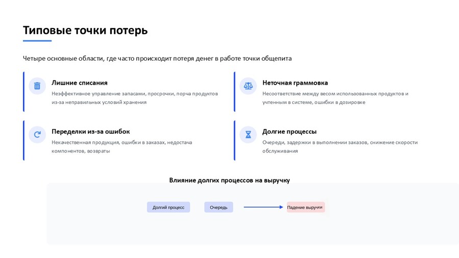Типовые потери почти всегда из 4 источников: списания, неточная граммовка, переделки, долгие процессы. Смысл подготовки — отловить их до открытия.