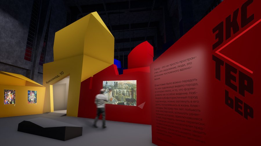 В выставке было важно передать, как Александра Экстер видела города и что формировало ее особое видение. Внешне сошедшие с картин здания внутри отражают то, чем жила художница в годы, проведенные в них. Наб-людая кубофутуристичный город художницы, можно заг-лянуть в его дома, погрузившись в жизнь Александры Эк-стрер тех лет: побывать в ее мастерской, услышать удиви-тельные истории, приключавшиеся с ней, подглядеть лич-ные переписки.