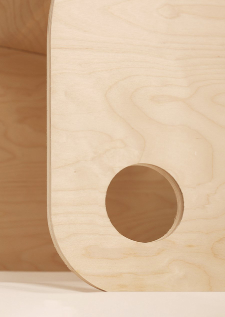Стол спроектирован с учетом стилистики стула и тоже собирается как конструктор. Его размер комофртен как для групповой работы, так и для личной. Форма стола не навязывает функцию, поэтому его можно использовать по-разному.