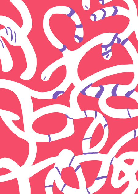 Для генерации паттерна использована функция «/blend» в нейросети Midjourney. Для получения орнамента смешаны два изображения: узор, разработанный для бренда Greentic, и иллюстрация по теме «Алиса в Стране Чудес»