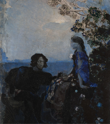 Герои в работах на тему «Гамлет и Офелия» также имеют этот трагичный взгляд, Врубель перенимает образ романтических героев, сломленных обстоятельствами и переносит их на свои полотна, предавая им свой характерный флер упадка и потери.