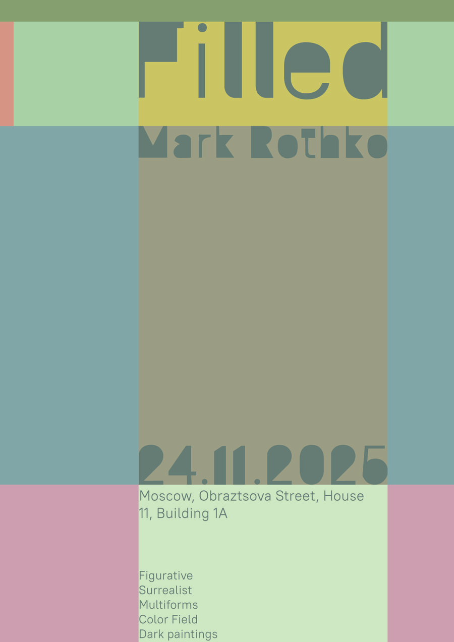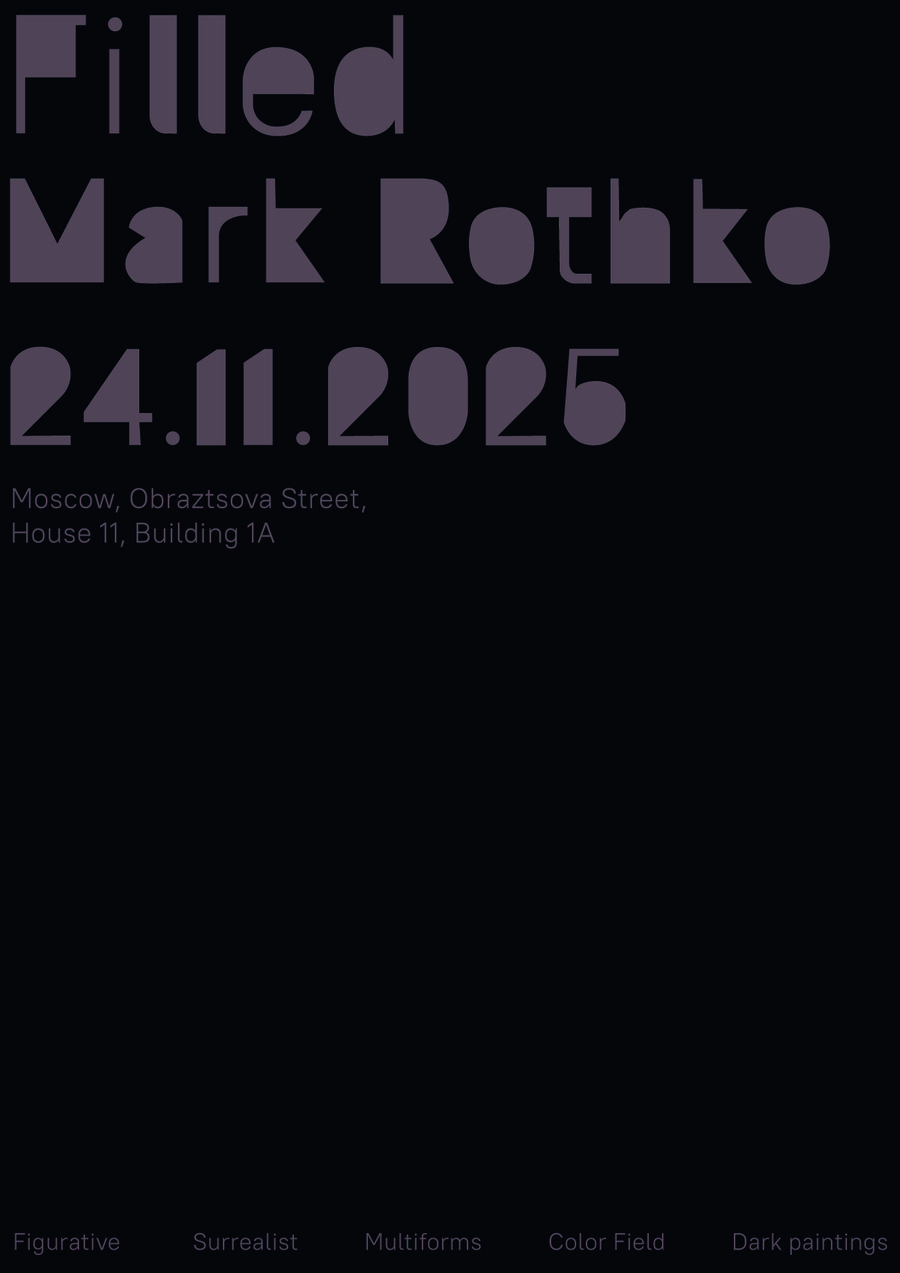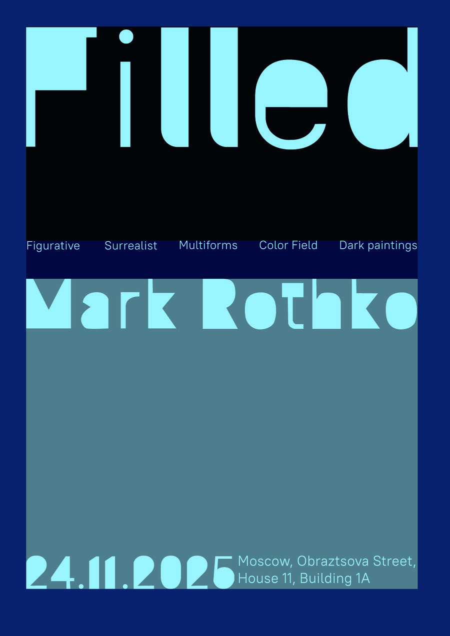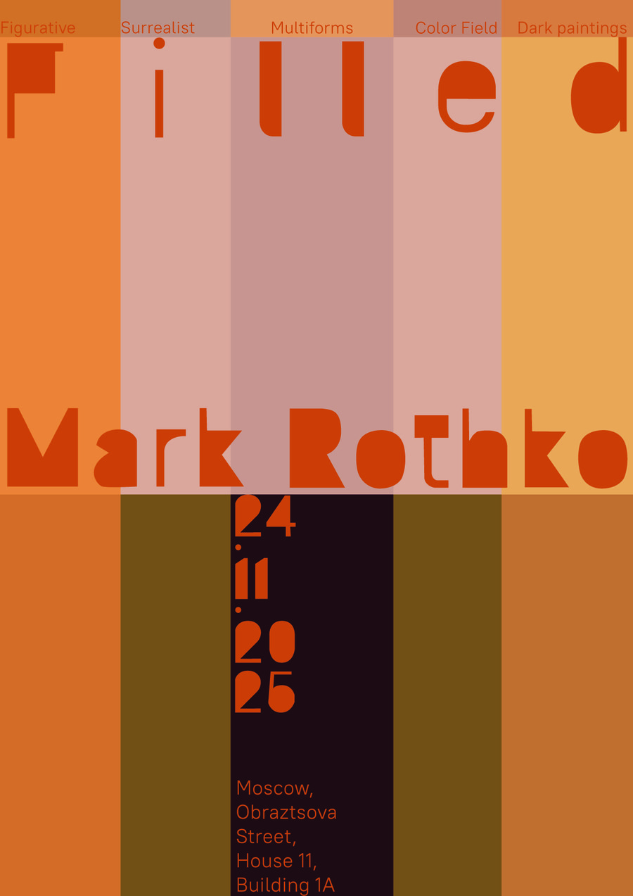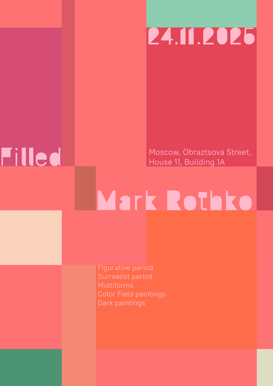 Выставка Filled состоит из десяти залов, основанных на пяти ключевых периодах творчества Марка Ротко — от ранней фигуративности до его поздних чёрных полотен. Каждый период разделен на два пространства: нейтральный выставочный зал и иммерсивная комната, передающие атмосферу и эмоциональный отклик конкретного этапа его пути.