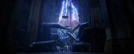 Конструкция визуально работает как искусственное сердце Лондона: сеть труб и кабелей напоминает сосуды, перекачивающие жизненную энергию. Красное свечение усиливает образ, будто это кровь и ярость одновременно, пульс безжалостного механического организма.
