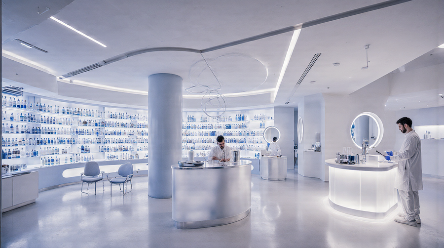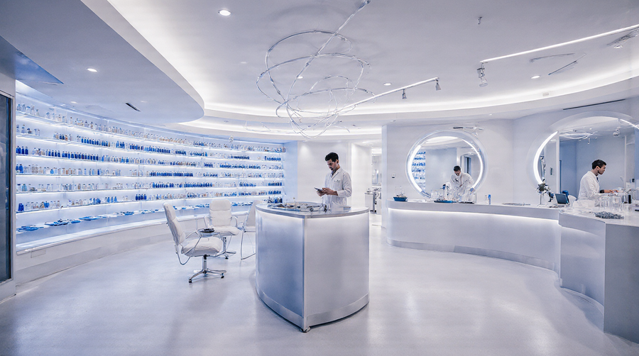 Конец промптов: Style: futuristic, medical, and calm — representing innovation, purity, and trust. Soft lighting, volumetric glow, with smooth metallic textures.