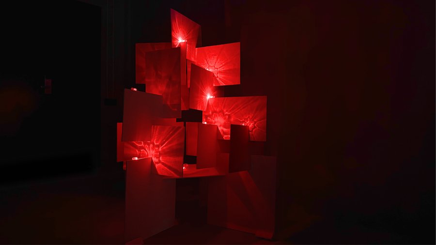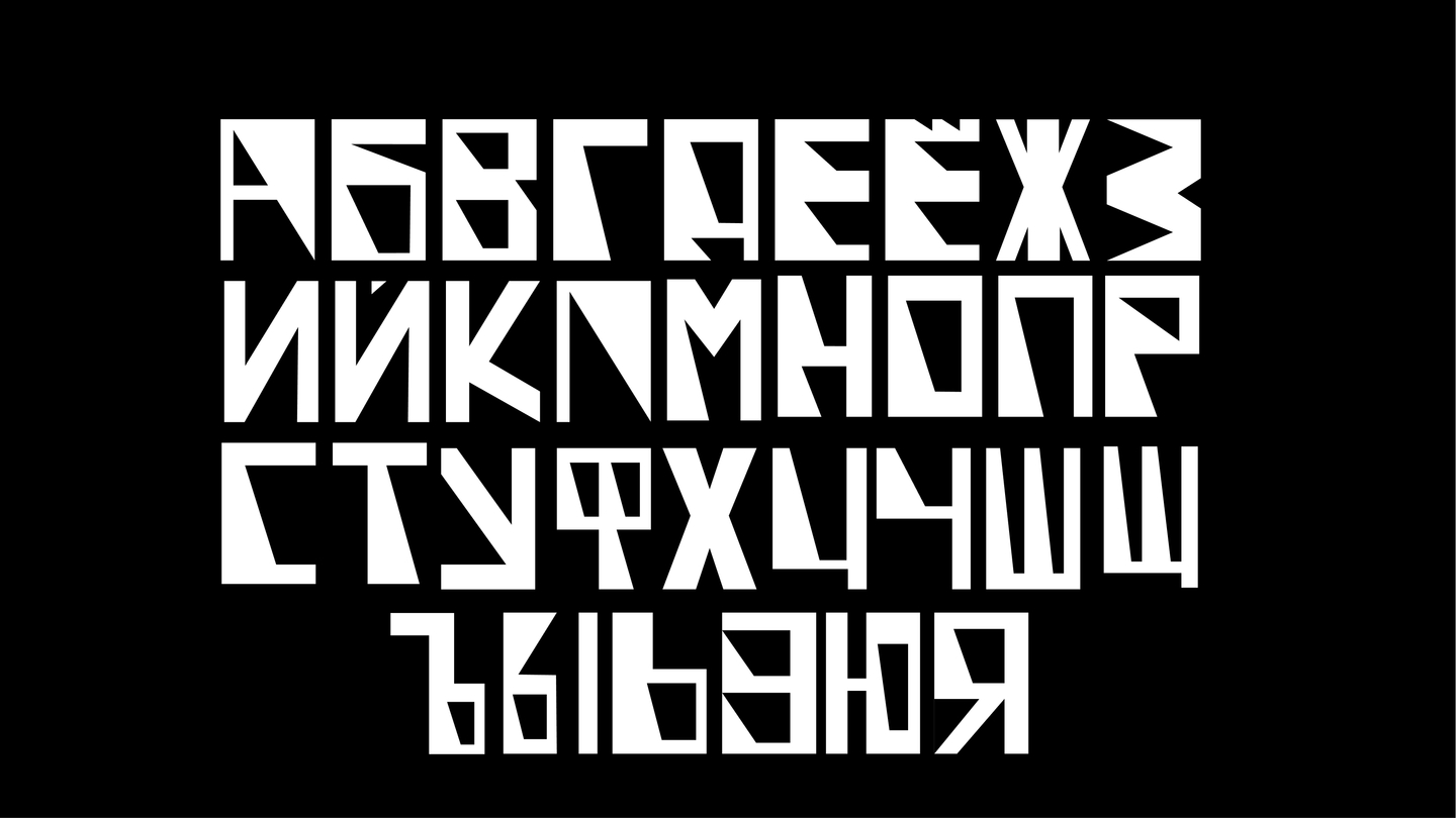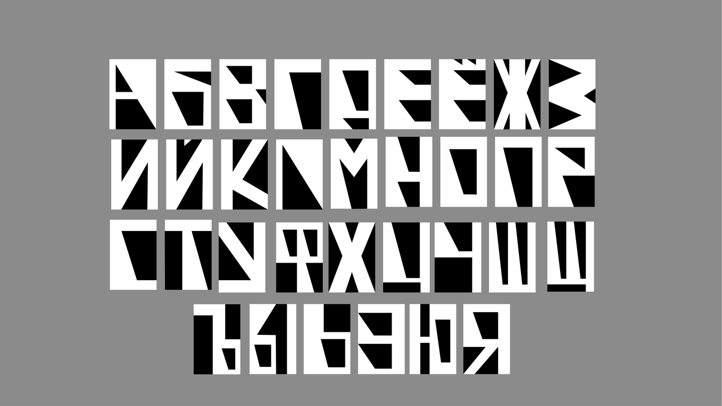 Для оформления презентации и зина был разработан акцидентный шрифт. В основе шрифта — метафора отсвета. Буквы формируются как отражения от фанеры, как след света на поверхности материала. Шрифт был разработан как продолжение объекта. Он не иллюстрирует конструкцию, а возникает из её формы и структуры.
