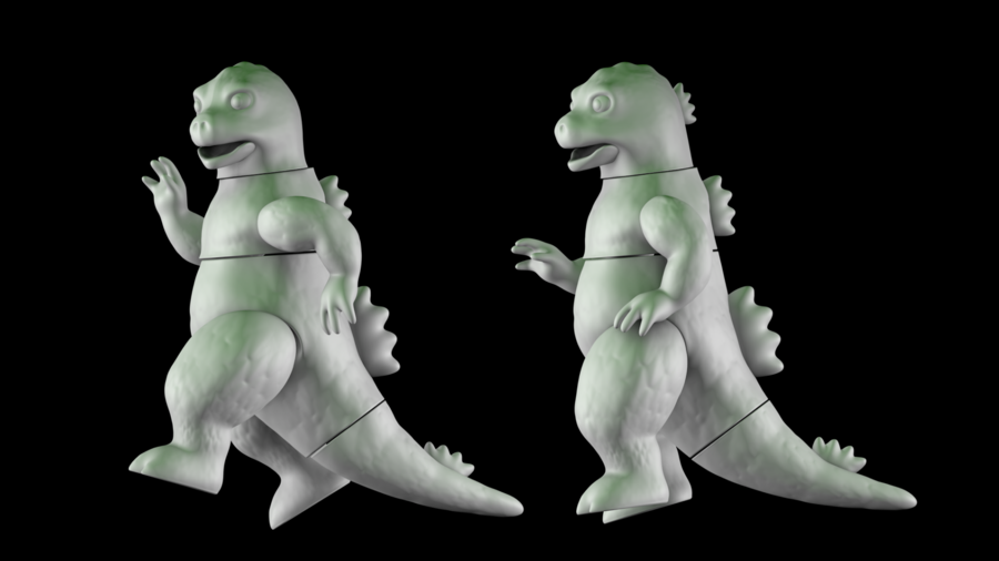 Изначальная фигурка больше ориентировалась на ретро-фигурки Sofubi. В процессе работы над персонажем, был найден современный пример игрушки, который вдохновил и сменил вектор работы на сочетание ретро основы и актуальными деталями