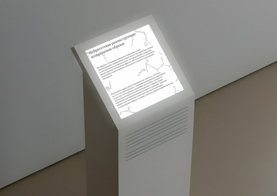 Зона реконструкций — «Возвращение образа». Нейросетевые реконструкции исчезнувших фресок, объяснение процесса цифрового восстановления, сопоставление на экранах было/могло бы быть. Показывает, что память может быть активным процессом восстановления.
