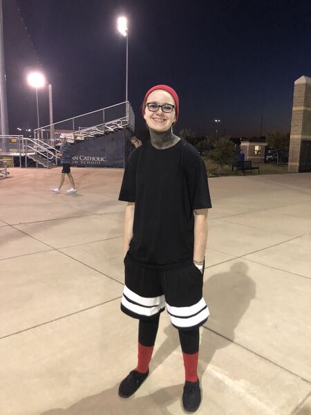 «Классический» образ Тайлера в очках и красной шапке (слева) и маленький фанат с теми же аксессуарами (справа)