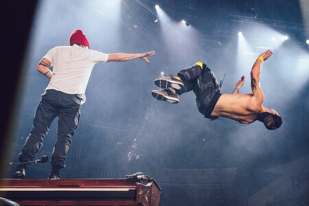Еще одной важной деталью можно назвать то, что группа исполняет песни не только на сцене, но и прямо в зале, среди своих фанатов. Вместе с этим они всё также участвуют в исполнении песен. У twenty one pilots получаются очень интересные и что важнее, интерактивные взаимодействия с толпой.
