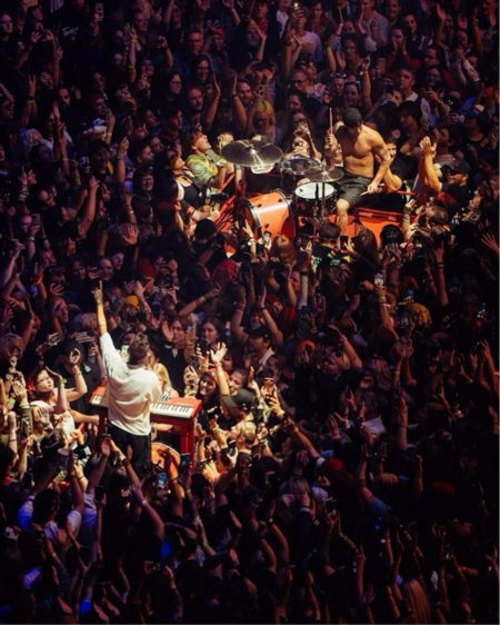Тайлер стоит среди фанатов. Twenty One Pilots: Bandito Tour. 2018 г.