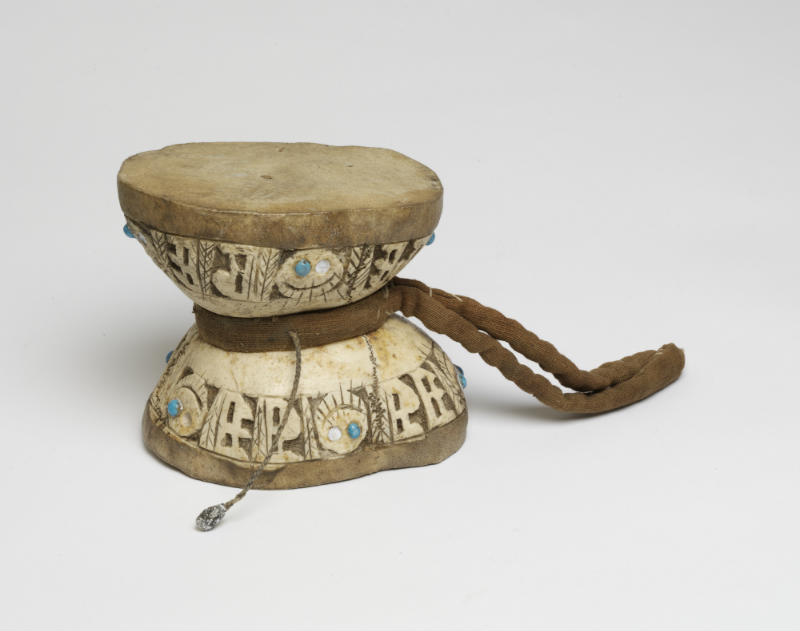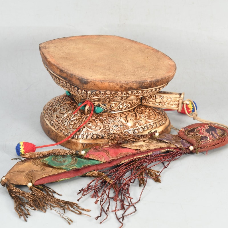 Тибетский барабан из двух черепов, зашитых в кожу.