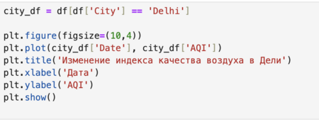 В рамках данного проекта было проведено исследование изменений качества воздуха в крупных городах Индии и факторов, влияющих на его формирование. Для анализа использовались ежедневные данные измерений загрязняющих веществ, собранные экологическими станциями мониторинга и представленные в открытом доступе на платформе Kaggle. В результате проведённого анализа можно сделать вывод, что качество воздуха в крупных городах Индии формируется под влиянием совокупности факторов, среди которых ключевую роль играют концентрации мелкодисперсных частиц, сезонные изменения и локальные особенности городской среды. Проблема загрязнения воздуха носит системный характер и требует комплексного подхода как на уровне отдельных городов, так и на уровне государственной политики. Социальная значимость данной темы, а также личный исследовательский интерес к Индии, позволили рассмотреть проблему качества воздуха не только с технической точки зрения анализа данных, но и в более широком контексте влияния окружающей среды на качество жизни и здоровье населения.
