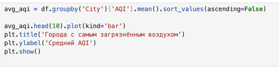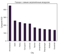 График 2 — столбчатая диаграмма, средний AQI по городам