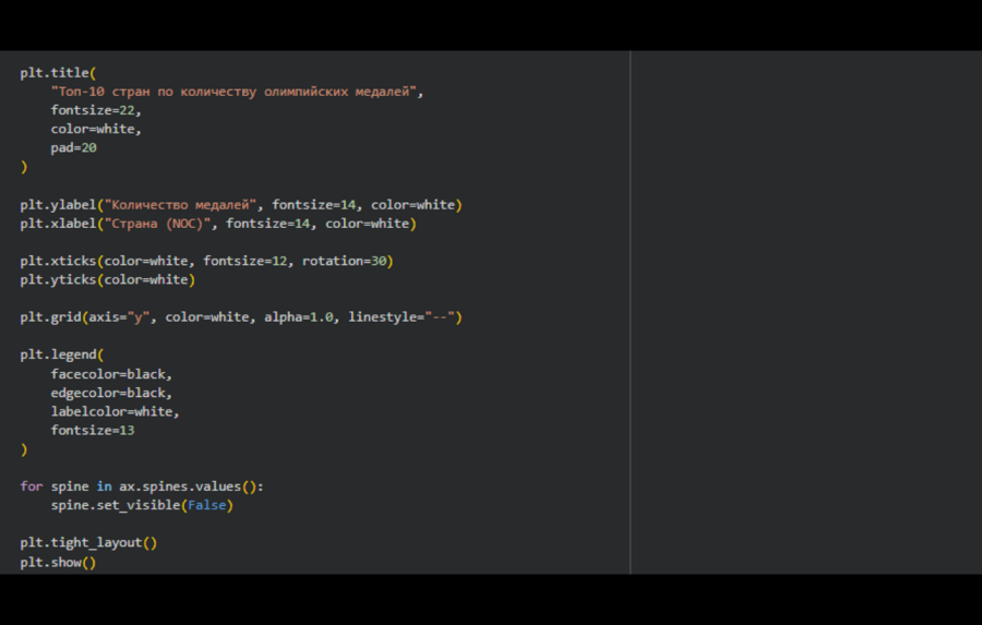 Анализ был выстроен таким образом, чтобы через визуализацию данных показать общие закономерности, характерные для Олимпийских игр как долгосрочного спортивного явления.