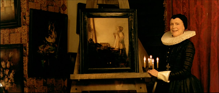 Картина в фильме предстает как символ испытания: чтобы начать позировать, Грит надевает серьгу хозяйки. Так, она словно входит в чужой социальный слой и получает неожиданное внимание к своей личности. Во время создания портрета также происходит переход, так как из простой служанки Грит превращается в музу художника. Картина Вермеера в фильме не просто воспроизводится: вокруг нее строится вымышленная история создания.