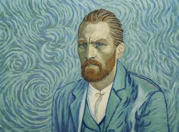 В «С любовью, Винсент» картины Ван Гога становятся буквально основой и тканью фильма. Работа полностью отрисована маслом, каждый кадр является отдельной картиной в духе Ван Гога. Сюжет выстроен как ретроспективный рассказ о художнике: спустя год после смерти сын почтмейстера, Арман Рулен, везет его последнее письмо брату Тео и по дороге распутывает обстоятельства смерти Винсента. Фильм оживляет множество картин Ван Гога и превращает их в декорации, а герои этих картин становятся прообразами для героев самого фильма.