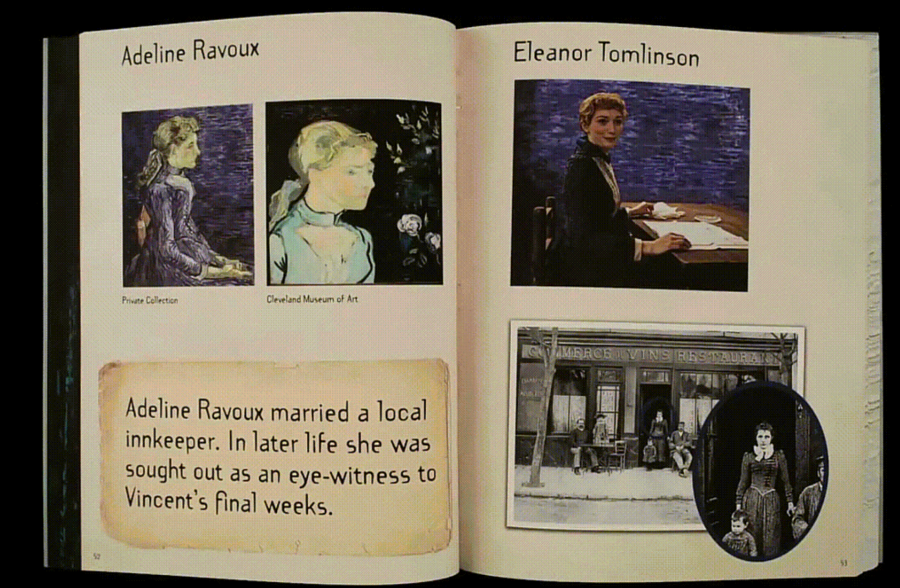 Здесь у искусства несколько ролей. Во-первых, оно помогает визуальной составляющей фильма: многие кадры вдохновлены реальными полотнами, которые создатели воплощают на экране. Живопись словно переходит в движение, картина становится перформансом, а массовая воспроизводимость работ компенсируется уникальной процедурой оживления линий — таким образом возникает ощущение присутствия внутри стиля. Во-вторых, картины становятся пространством действия, а зритель словно входит внутрь мира Ван Гога.