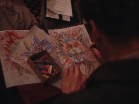 Кадры из фильма «Кошачьи миры Луиса Уэйна». Иллюстрации авторства художника, которые показывают его психоэмоциональное состояние