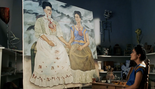 1. Фрида Кало. «Две Фриды». 1939 г. 2. Кадры из фильма «Фрида». Реж. Джули Теймор. 2002 г.