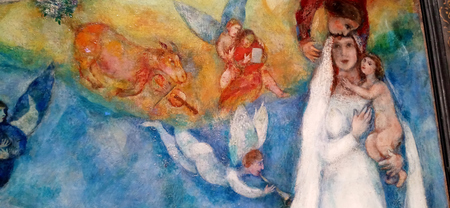 1. Кадр из фильма «Все о моей матери». Реж. Педро Альмодовар. 1999 г. 2. Марк Шагал. «Сельская Мадонна» (фрагмент). 1938 г.
