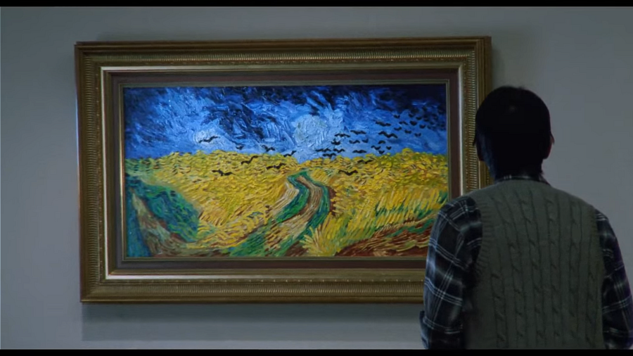 В «Снах» Арины Куросавы живопись превращается в особое пространство, в котором можно оказаться. Ярким примером служит новелла «Вороны», где герой буквально погружается в мир картин Винсента Ван Гога. Режиссер оживляет живопись и превращает ее в живой сон. Кульминацией визуального путешествия становится «Пшеничное поле с воронами» и погоня за художником: дорога превращается в практически бесконечный путь, а птицы становятся метафорой страха. Так, картина превращается в драматическое пространство. Сам эпизод играет роль оммажа, а живопись становится посредником между зрителем и внутренним миром автора.
