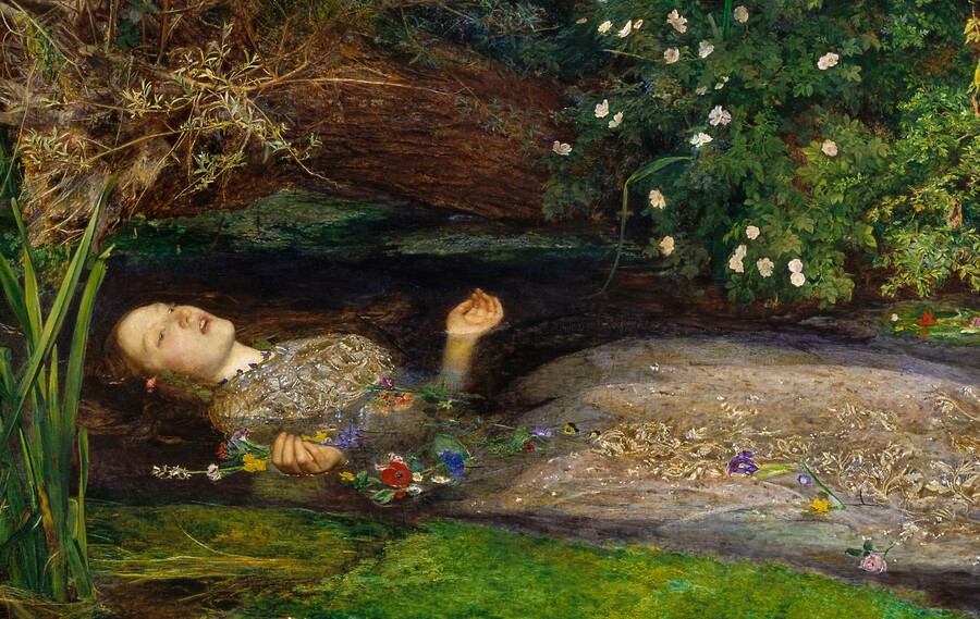 В «Меланхолии» самым узнаваемым образом является образ «Офелии» Джона Эверетта Милле. В постере к фильму и в одном из ключевых кадров Жюстин лежит в воде в свадебном платье, практически в точности повторяя композицию Милле. Так, героиня превращается в цитату шекспировского мифа и прерафаэлистского изображения. Как и Офелия, героиня «утопает», но только под тяжестью собственного внутреннего мира.