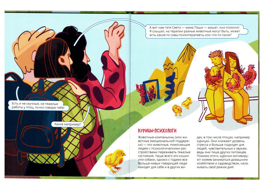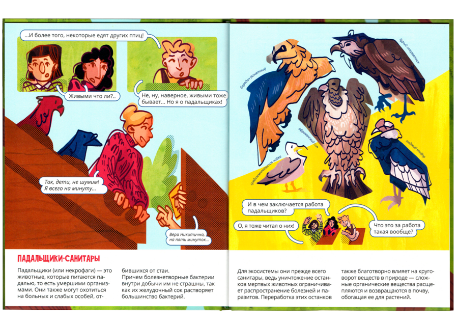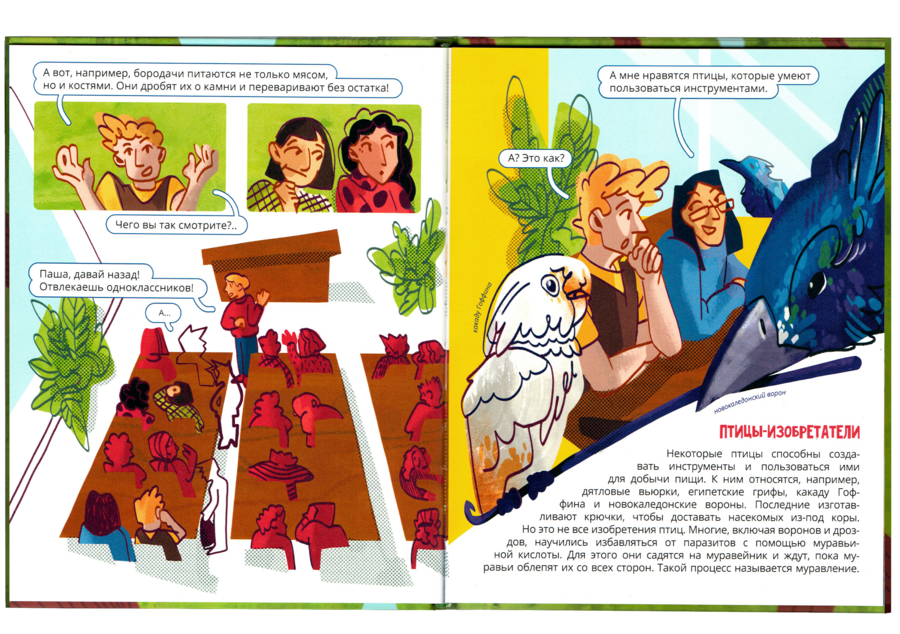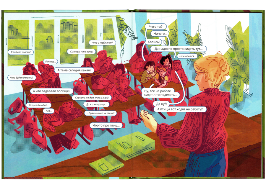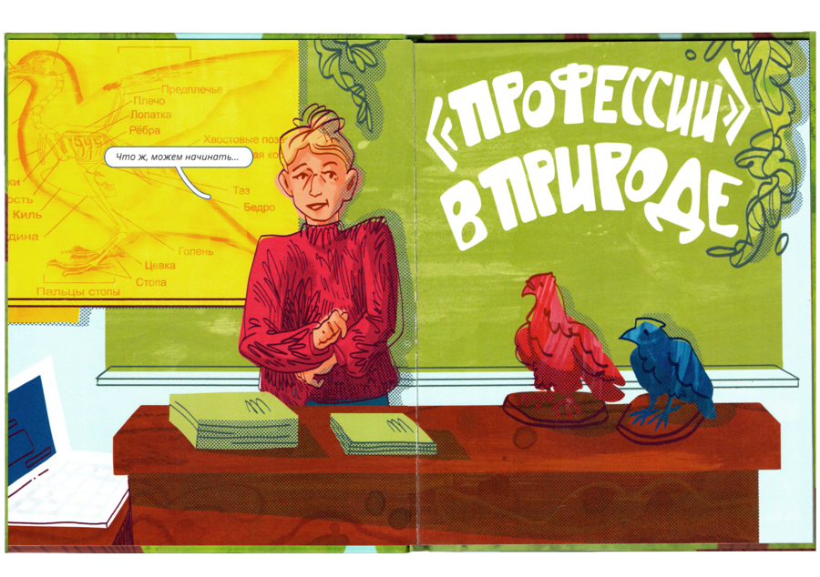 В первой главе ребята во время урока узнают о том, какие профессии есть у птиц в естественной среде обитания.