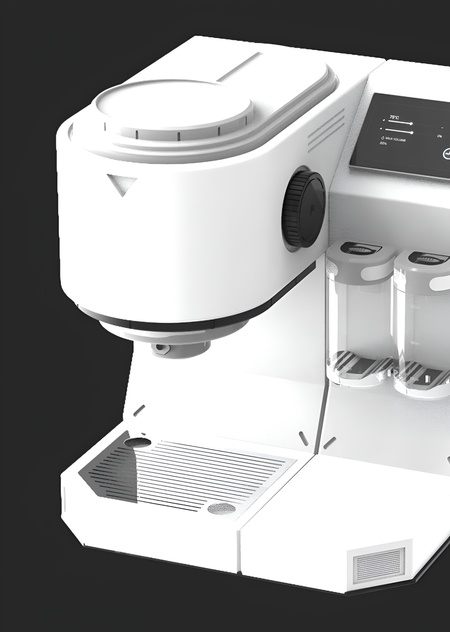 1. OLED-дисплей с визуализацией процесса и параметров (температура, давление, этап): пользователь видит каждый шаг и легко понимает статус устройства. Индикаторы ошибок в виде понятных действий (например, «Почистите молочник») 2. Модульная система съемных компонентов. Контейнеры для воды, молока, каплесборник — быстросъёмные блоки на магнитах или защёлках