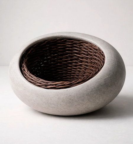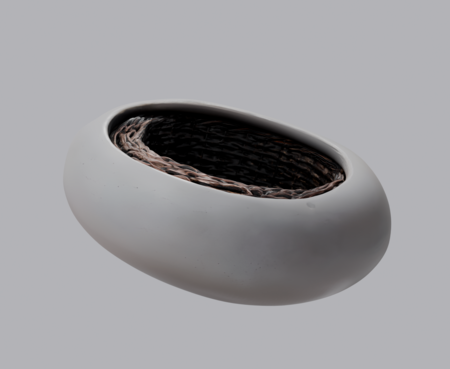 Коллекция корзин «BLOOM» исследует образ роста и раскрытия формы через предмет повседневного быта. В основе задумки — трансформация традиционной деревенской корзины и камня в объект, который сочетает утилитарную функцию и скульптурную выразительность. Коллекция переосмысляет деревенскую эстетику через призму современного предметного дизайна: натуральные материалы, спокойные текстуры и простая конструкция сочетаются с органическими, почти архитектурными формами.