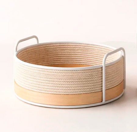 3D concept render of a minimalist modern basket, geometric round or square shape, smooth wood or rope, optional metal frame, clean lines, minimal texture, empty, neutral lighting, modern product