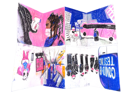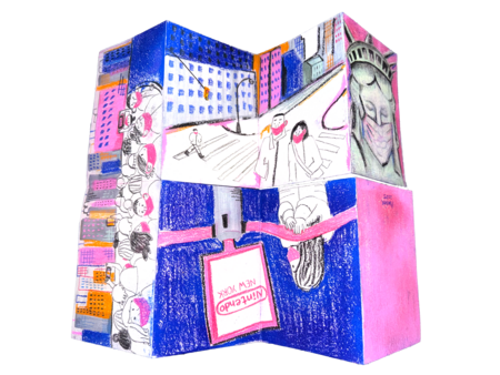 Зин состоит из зарисовок с прогулки по Нью-Йорку в разгар пандемии.