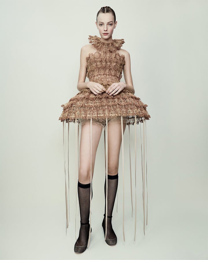 Всевозможные интерпретации пышной юбки кринолинового силуэта викторианской эпохи можно наблюдать в данной коллекции Schiaparelli. Как отмечает сам дизайнер, ему важно «создавать одежду, в которой современность имеет крепкие отношения с наследием.» [4]