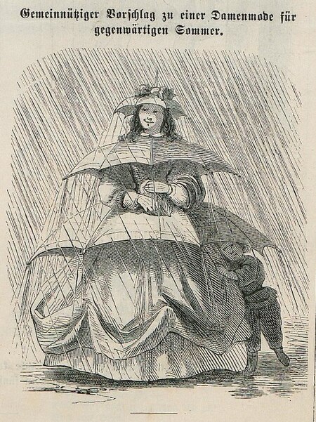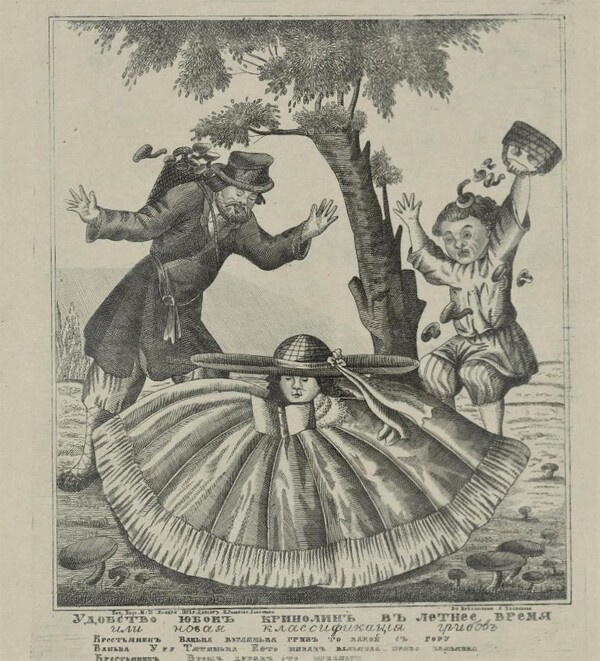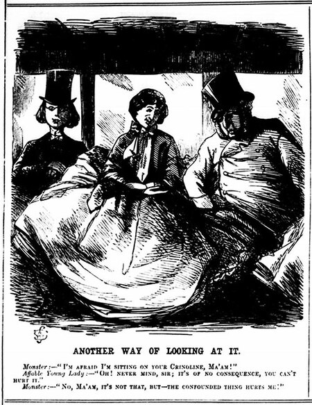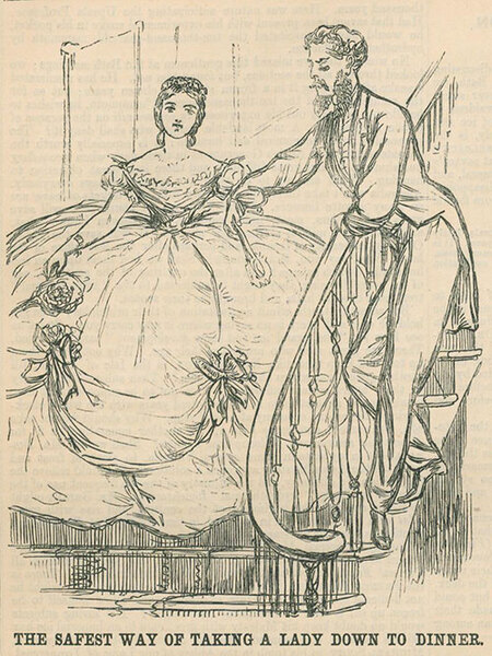 Смех служил своеобразным механизмом нормализации: ситуации, в которые могли попасть женщины в кринолине в обществе, часто становились центром насмешек в юмористических известных журналах того времени.