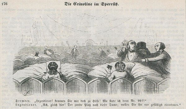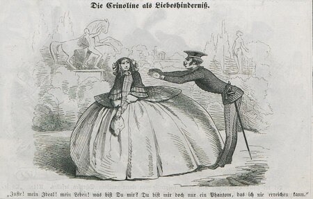 Критики кринолина все чаще транслировали ассоциативный образ кринолина, например, представляли его клеткой, в которую заточена женщина.