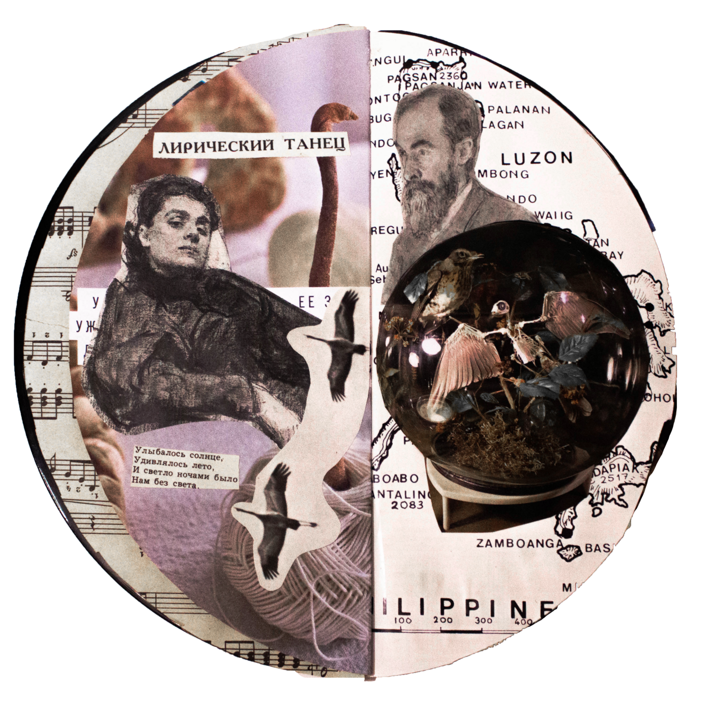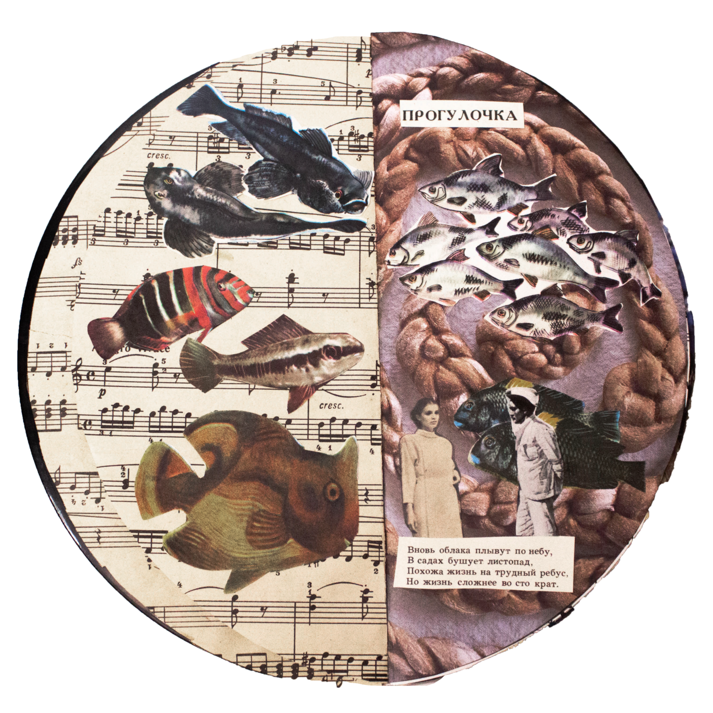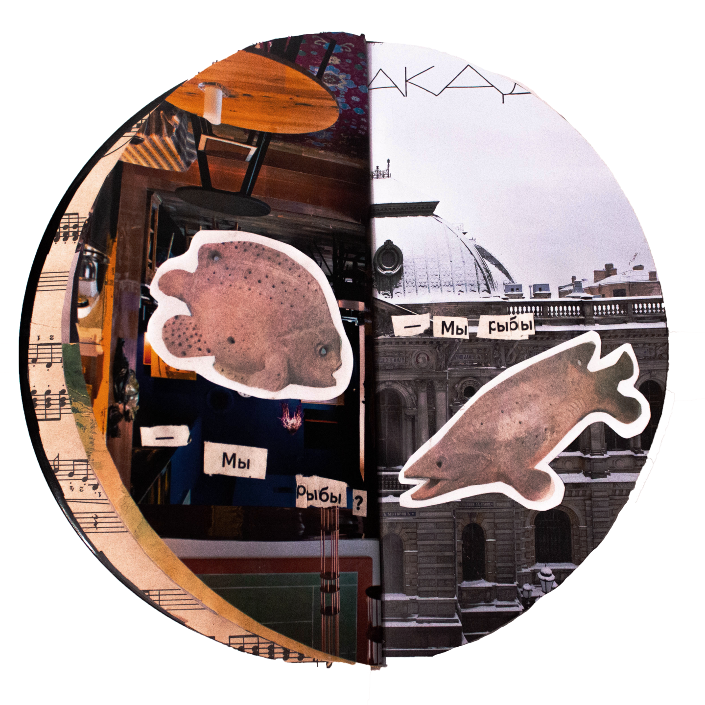 В качестве медиума я выбрала коллаж. Я давно экспериментирую с этим видом искусства, но именно в этом проекте я воплотила свою давнюю мечту — перенести коллаж с бумаги на объемные предметы.