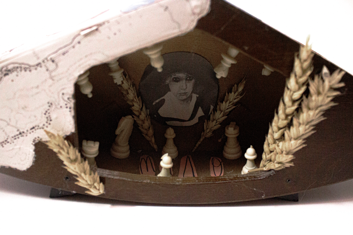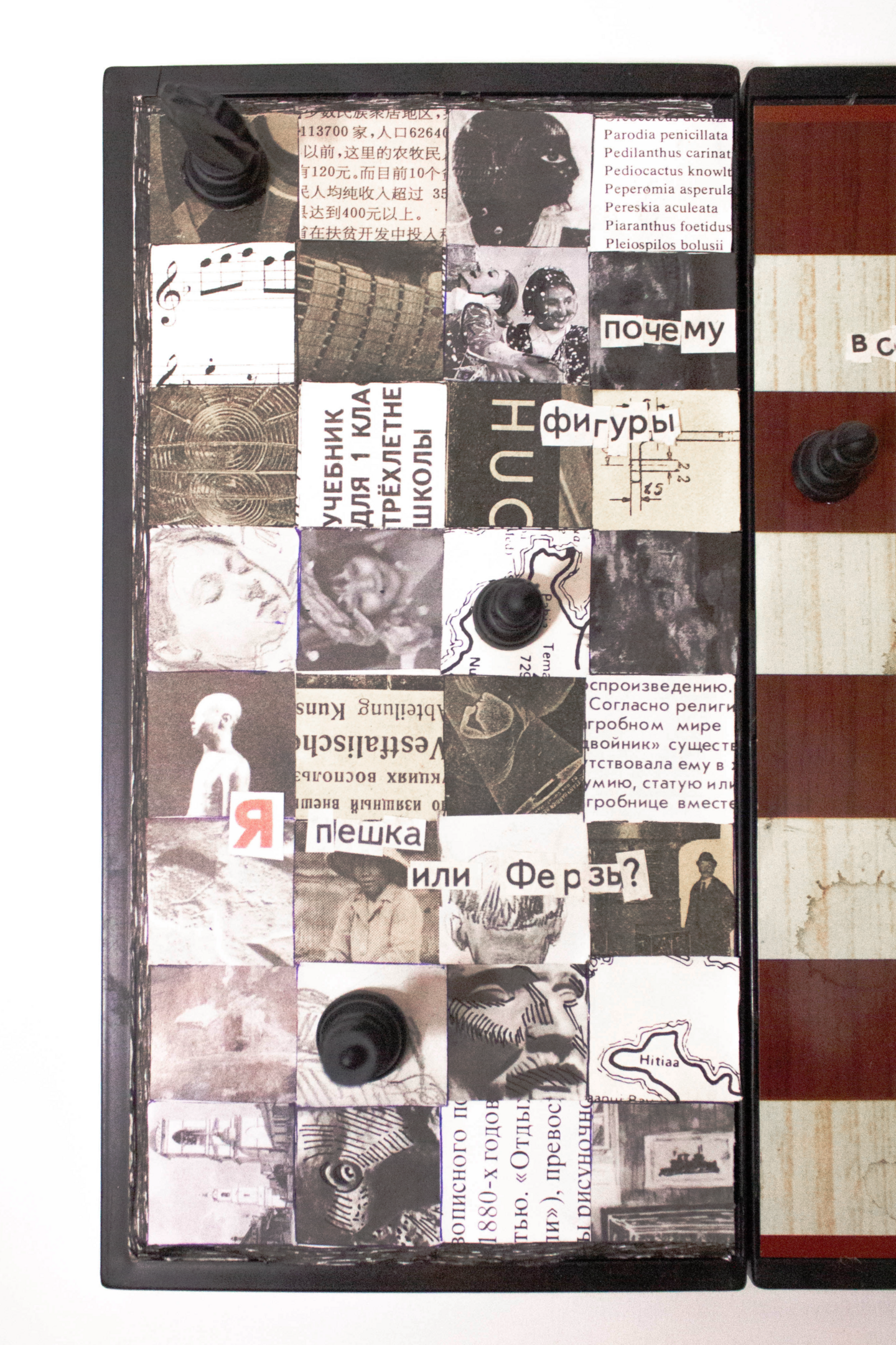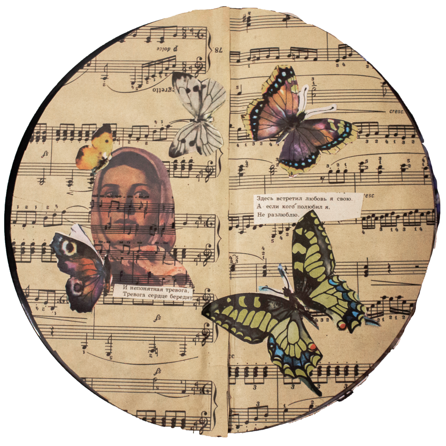 В качестве медиума я выбрала коллаж. Я давно экспериментирую с этим видом искусства, но именно в этом проекте я воплотила свою давнюю мечту — перенести коллаж с бумаги на объемные предметы.