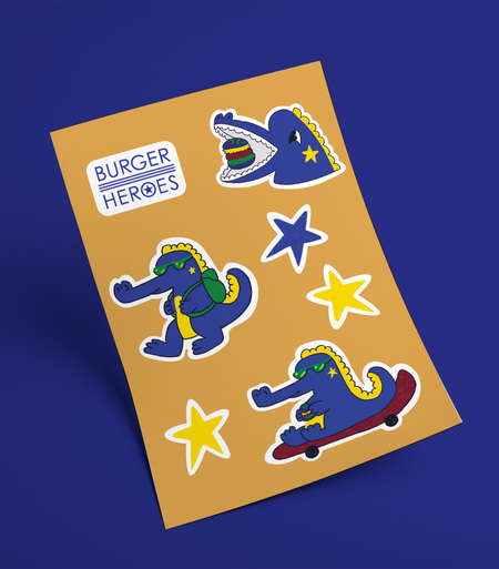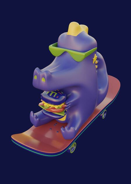 Крокодильчик получает кайф от жизни и катается на скейте, обучаясь новым трюкам. Среди городской суеты предпочитает не спеша наслаждаться сочным бургером.