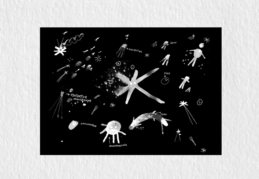 Первичный бульон — шумовая композиция о самой первой жизни на Земле в сопровождении абстрактных иллюстраций.