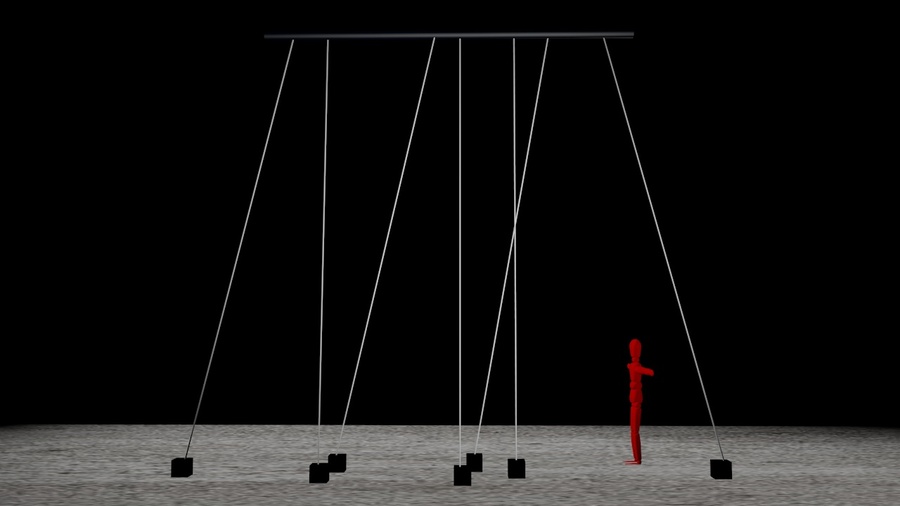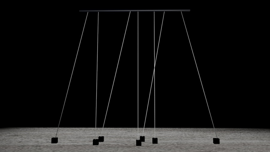 Все 7 композиций, играющих одновременно при отсутствии движущегося объекта в поле действия датчиков движения. А именно, во время наблюдения инсталляции со стороны.