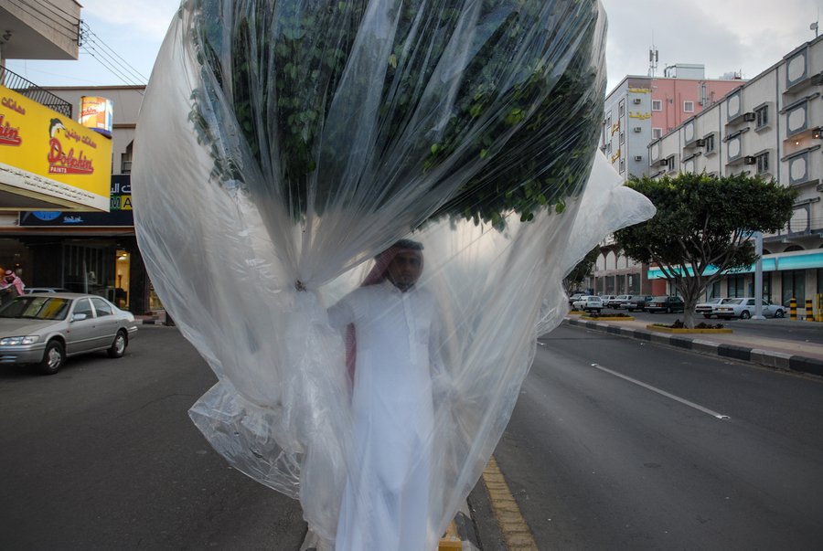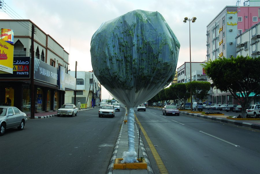 В Саудовской Аравии посадили австралийское дерево Конокарпус прямой, чтобы повысить уровень кислорода и защитить почву от эрозии. Но у этого дерева оказались неприятные последствия: оно уничтожало местную растительность и вредило инфраструктуре. Абдулнассер Гарем создал перформанс под названием «Флора и фауна», чтобы обратить внимание на экологическую угрозу, которую представляет собой пересадка этого дерева. Он завернул себя в пластик рядом с деревом и провел там шесть часов в знак публичного протеста. В 2020 году, спустя 13 лет после первого выступления Гарема, Саудовская Аравия запретила посадку Конокарпуса прямого.