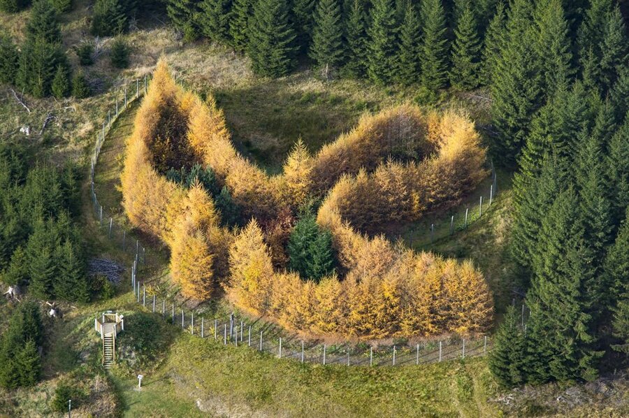 «Потерянный сокол Вестфалии» — большая арт-инсталляция, созданная художником-экологом Аланом Сонфистом в 2004 году. Она находится в поместье принца Рихарда Сайн-Витгенштейн-Берлебурга в Германии. На участке земли высотой один метр художник посадил саженцы европейской лиственницы. Внутри этой земляной стены растут около 350 растений, которые исчезли из этого места еще во времена ледникового периода, но теперь они возвращены благодаря этому проекту.