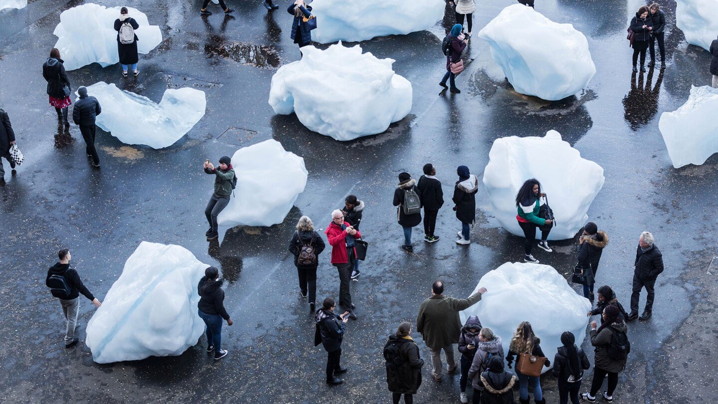 «Ледяные часы» — это масштабная экологическая арт-инсталляция Олафура Элиассона, созданная совместно с геологом Миником Розингом. Проект был впервые показан в 2014 году в Копенгагене и с тех пор появился в нескольких городах, включая Лондон и Париж. Инсталляция представляет собой крупные глыбы льда, привезённые из Гренландии. Они размещаются в общественных местах, чтобы посетители могли наблюдать за их медленным таянием. Элиассон и Розинг надеются, что непосредственное взаимодействие со льдом преобразует научные знания в эмоциональную осведомлённость и побудит людей и политиков к принятию мер по борьбе с изменением климата.