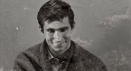 В финале «Психо» (1960) Хичкока мы видим Нормана Бейтса в камере. Звучит «голос матери», но он уже явно внутри него. Камера держит неподвижный крупный план: Норман почти не моргает, слегка улыбается и смотрит прямо в нас. В этот момент на долю секунды на его лицо накладывается изображение черепа/лица матери. Затем кадр уходит на машину, которую вытаскивают из болота.