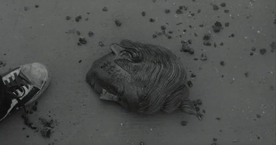 «What Did Jack Do?» — короткий нуар Дэвида Линча: детектив на вокзале допрашивает мартышку по имени Джек Круз, подозреваемую в убийстве; Джек отвечает загадками, признаётся в любви к курице по имени Тутатабон, поёт и в финале оказывается под арестом. В данном случае «маска» — это наложенный в постпродакшне человеческий рот и голос на мордочку мартышки. Этот шов между телом и голосом сразу выдаёт искусственность и делает видимым то, что кино обычно скрывает: идентичность — это роль, склеенная из образа и звука. Животное тело говорит человеческими клише нуара, и жанр сам становится маской, превращающей существо в персонажа. Возникает эффект зловещей долины: смешно и тревожно одновременно.